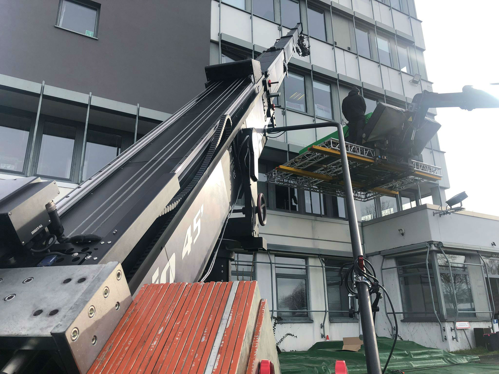 Motion Capture fähiger Teleskopkran mit beeindruckender Optikhöhe. Mit dem Scorpio 45 legt Servicevision noch einmal richtig an Länge nach. Neben seiner beeindruckenden Optikhöhe von 14 Metern überzeugt der Teleskopkran durch seine technischen Features, wie zum Beispiel die programmierbaren Bewegungen des Teleskoparms und dessen Limits.