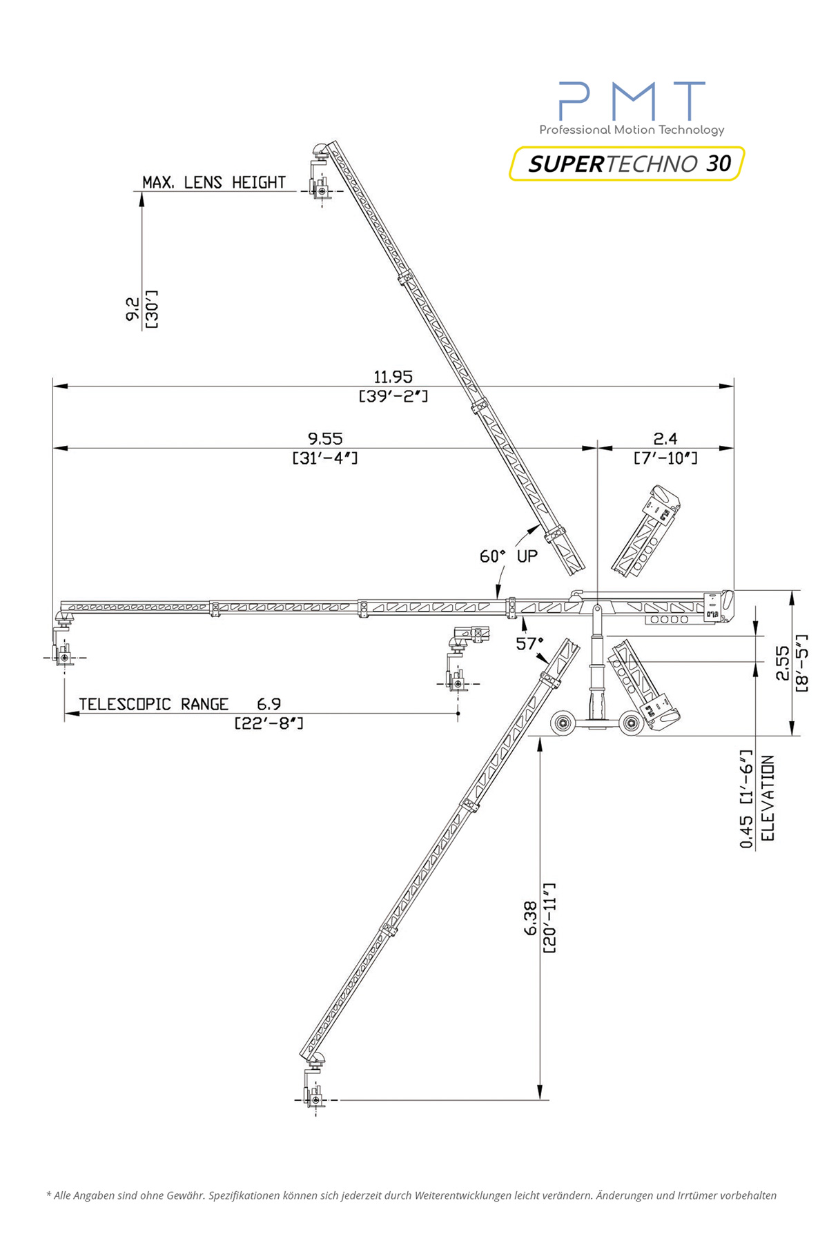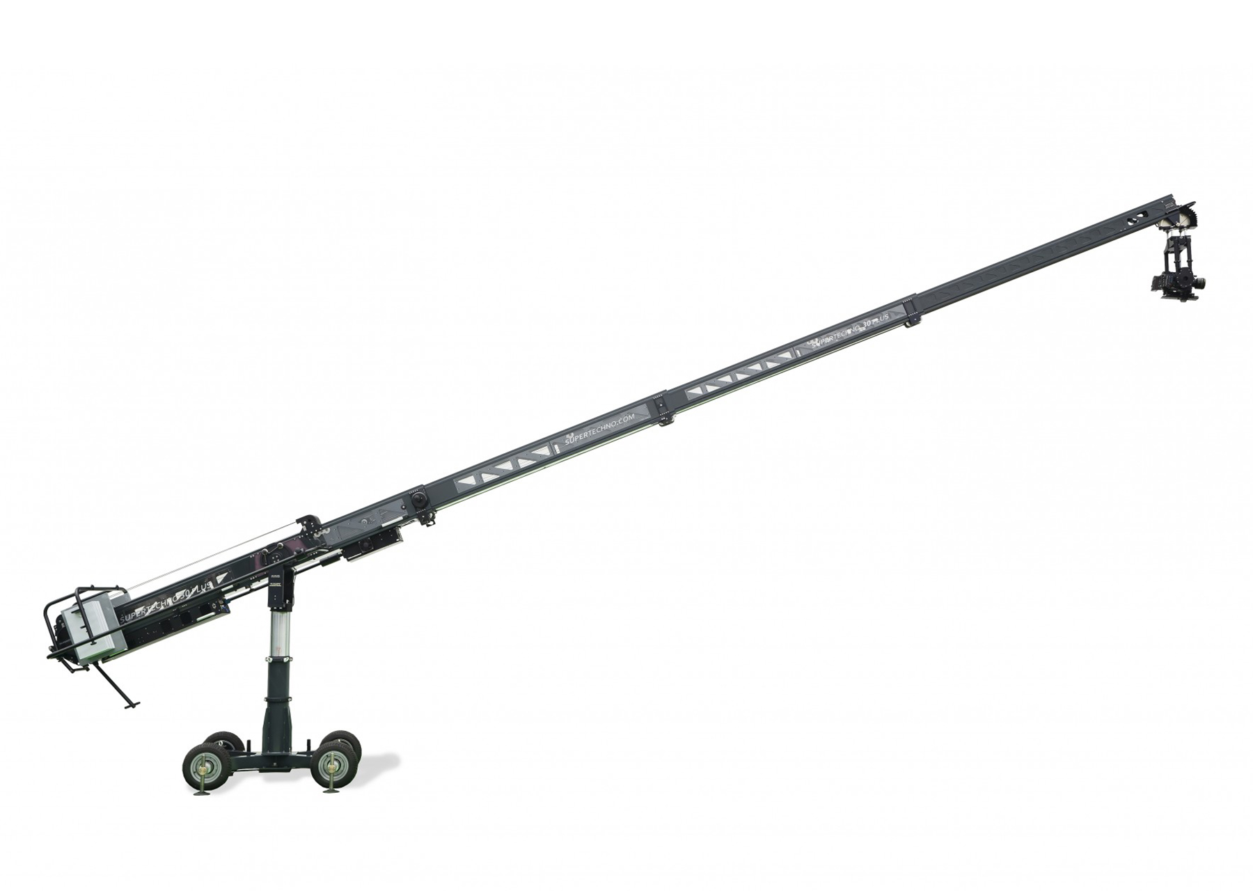 Der SuperTechno 30 macht da weiter, wo andere Kräne aufhören, weil er im „On“ noch zusätzliche Teleskopfahrten ermöglicht. Dem Operator steht ein Teleskopbereich von 7 m (22.5 ft.) zur Verfügung, der Techno Z-Head Remotehead kann mit allen Film- und TV-Kameras ausgestattet werden.